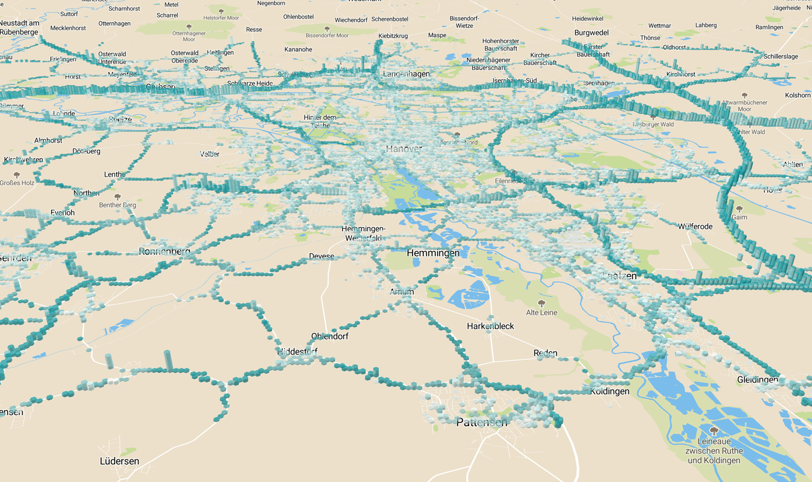 Wenn Sie Rohdaten für ein Forschungsprojekt oder zur Analyse von Verkehrsmustern in Ihrer Stadt oder in der Umgebung Ihres Werks selbst benötigen, können wir diese zur Verfügung stellen. Wir können aus unserem Korpus beliebige georeferenzierte Gebiete innerhalb der Bundesrepublik Deutschland exportieren.